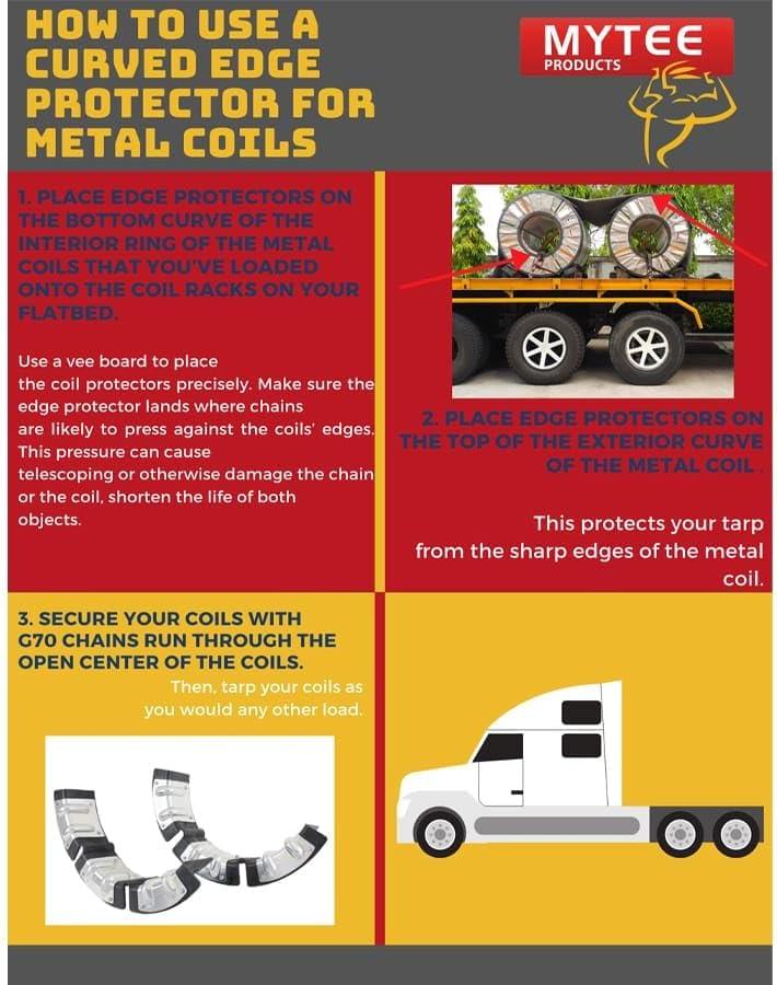 • PATENT-PENDING NOTCHED CURVE DESIGN. This design is a Mytee Products exclusive! Our notched curve works with the coils’ natural shape, rather than against it (as traditional corner protectors and edges do). Eliminating the risk of damage and slippage has never been easier with our heavy duty metal coil protectors.