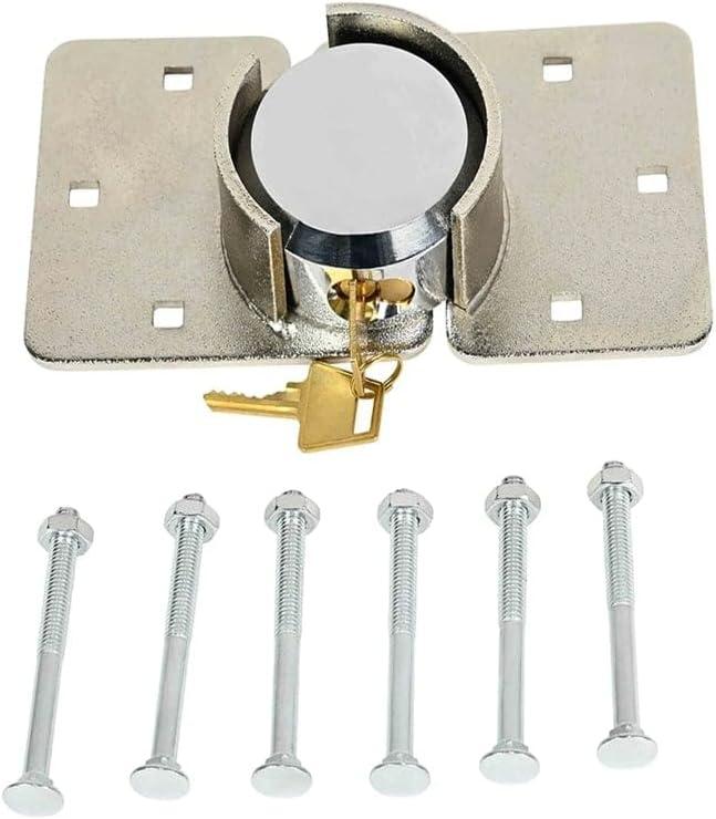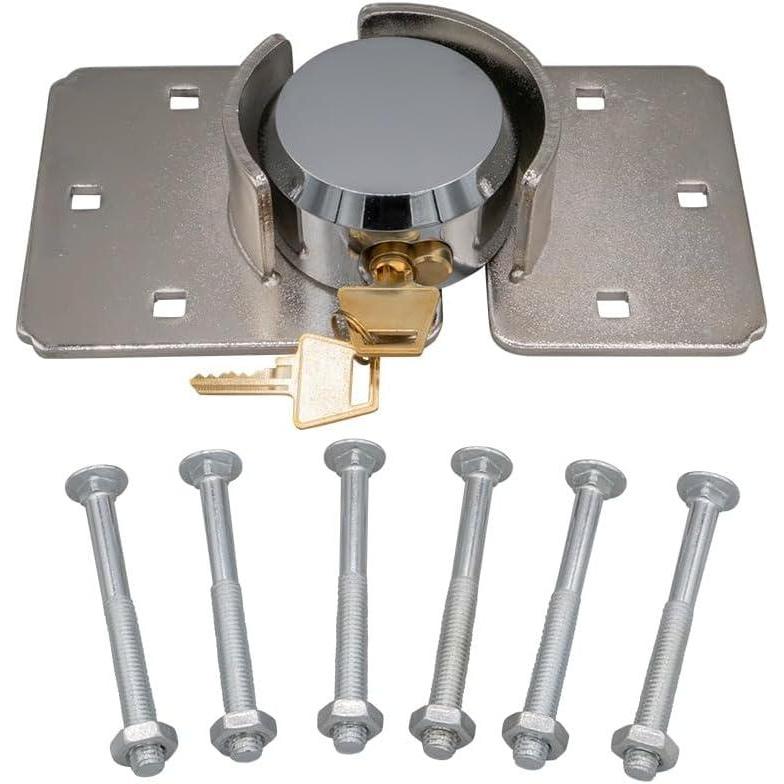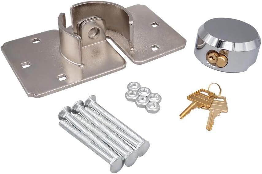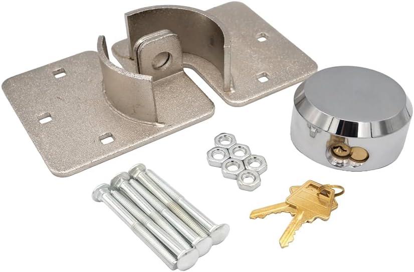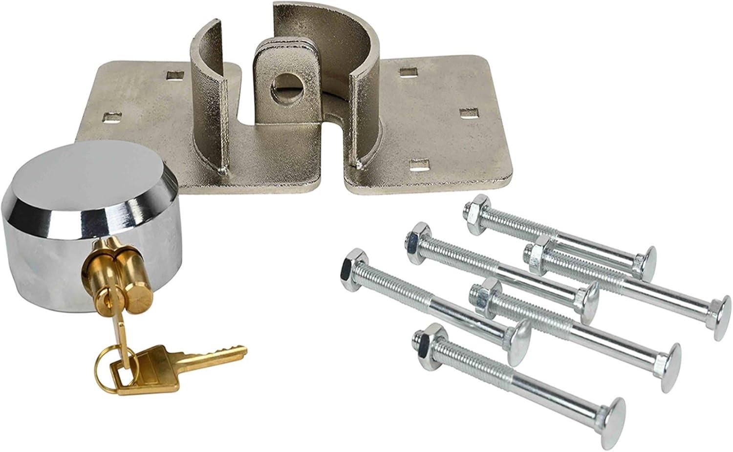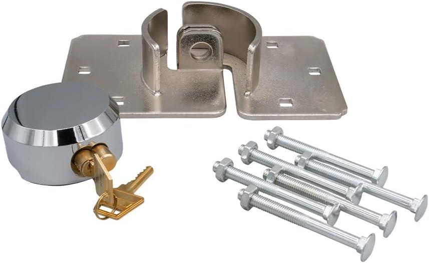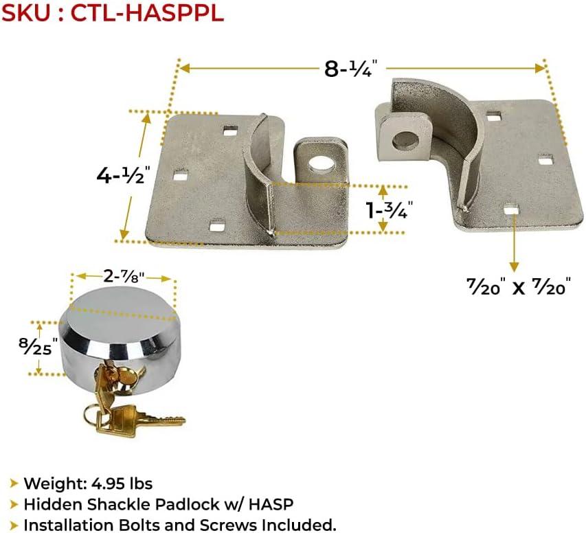 Mytee Products Hidden Shackle Padlock & Hasp w/ 2 Keyed Set – Heavy Duty Solid Steel Hockey Puck Lock Chrome Coating Ideal for Enclosed Trailer, Vans, Gates & General Security(1 – Pack)