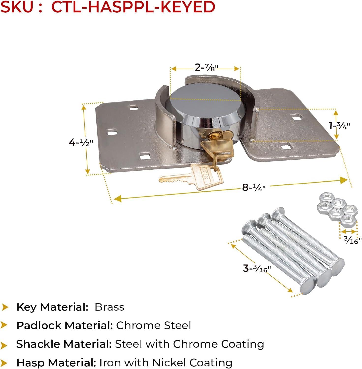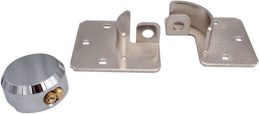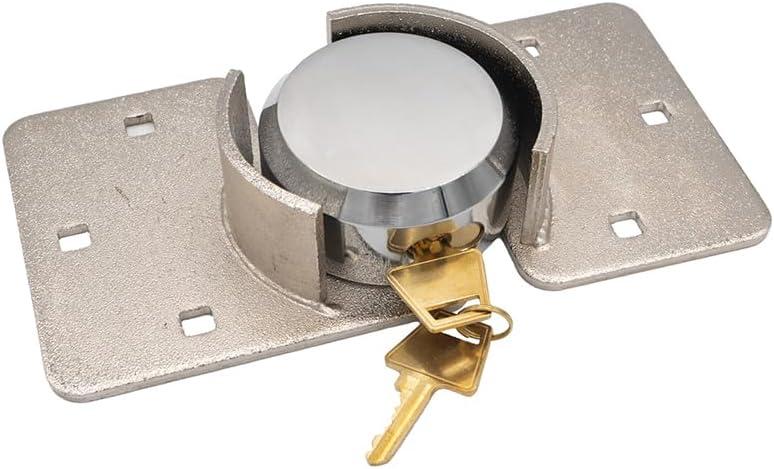 Mytee Products Hidden Shackle Padlock & Hasp w/ 2 Keyed Set - Heavy Duty Solid Steel Hockey Puck Lock Chrome Coating Ideal for Enclosed Trailer, Vans, Gates & General Security(1 - Pack)