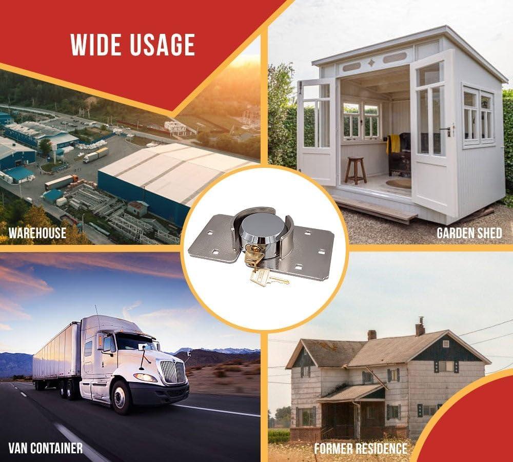 • This padlock can be utilized for a broad range of applications, including but not limited to securing gates, moving trucks, storage lockers, buildings with sliding doors, and other industrial or personal needs.