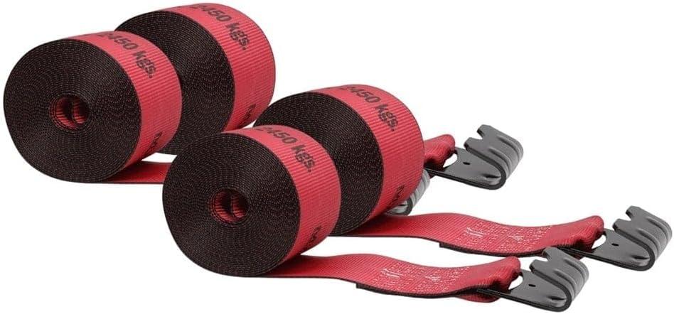 Mytee Products Kinedyne Winch Straps 4″ x 30′ Gold Heavy Duty Tie Down w/Flat Hooks WLL# 5400 lbs | 4 Inch Cargo Control for Flatbed Truck Utility Trailer (10 Pack)(Red)