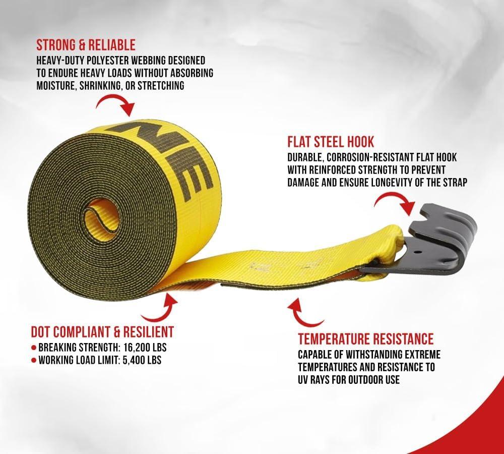 Winch Strap (Kinedyne Brand) – 4″ Webbing with Flat Hook