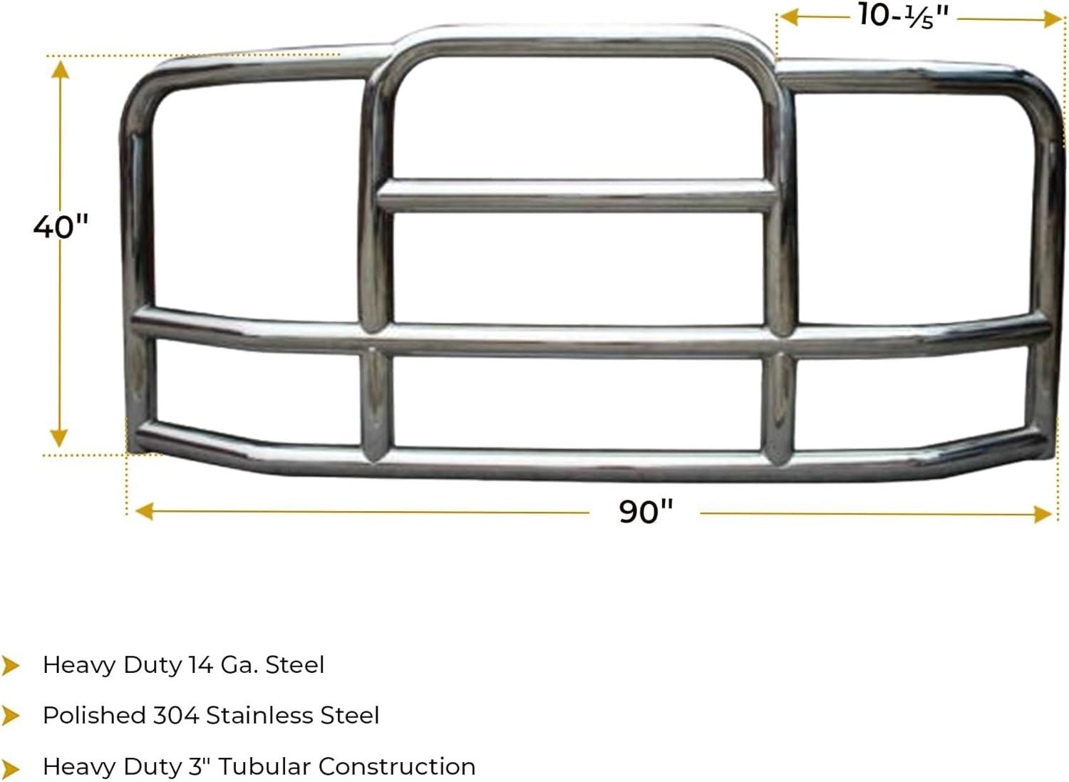 Mytee Products Medium Model Deer Grille Guard Compatible for VOLVO VNL (2004-2017) with Brackets – 84-2/5″x42-3/5″ Heavy Duty Polished Stainless Steel Grille Guard for Trucks(Medium)