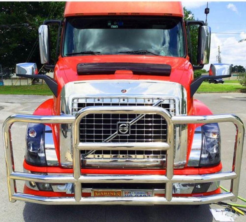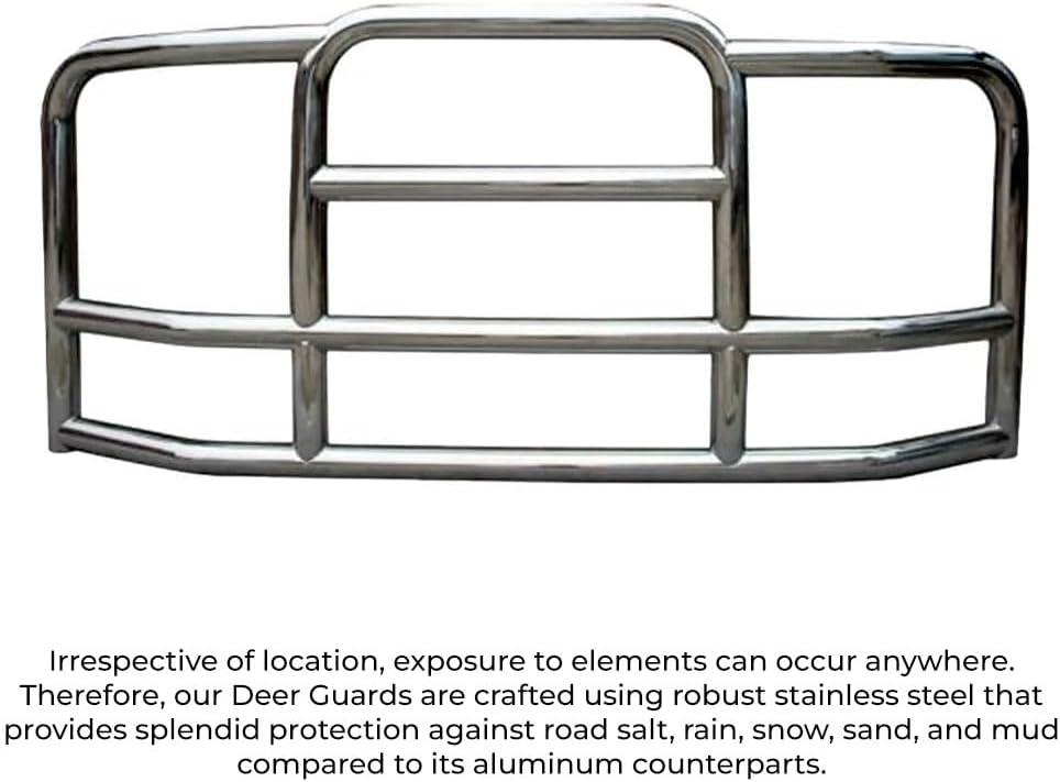 imageMytee Products Medium Model Deer Grille Guard Compatible for VOLVO VNL 20042017 with Brackets  8425x4235 Heavy Duty Polished Stainless Steel Grille Guard for TrucksMedium