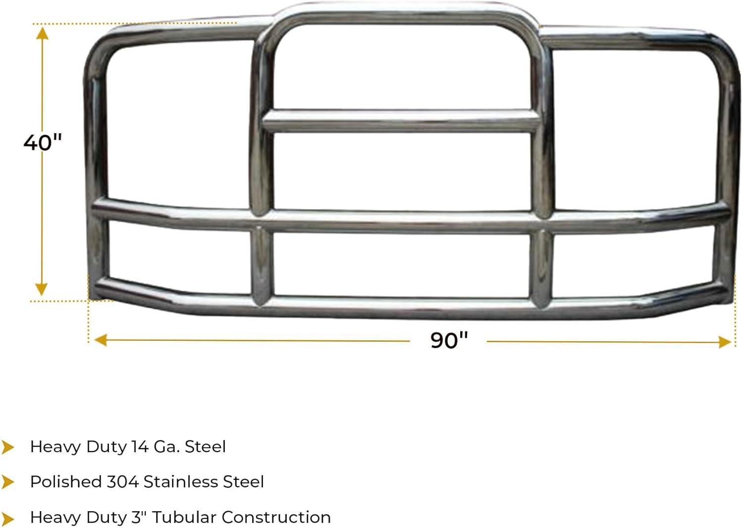Mytee Products Medium Model Deer Grille Guard Compatible for VOLVO VNL (2004-2017) with Brackets - 84-2/5"x42-3/5" Heavy Duty Polished Stainless Steel Grille Guard for Trucks(Large)