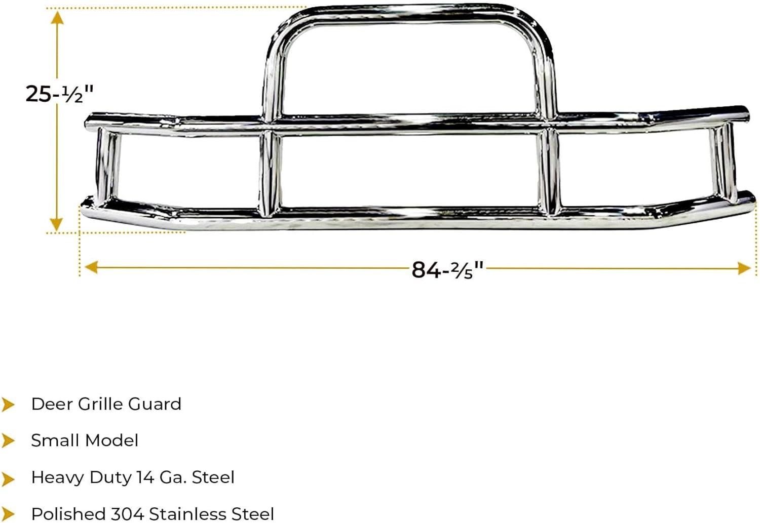 Mytee Products Medium Model Deer Grille Guard Compatible for VOLVO VNL (2004-2017) with Brackets – 84-2/5″x42-3/5″ Heavy Duty Polished Stainless Steel Grille Guard for Trucks(Small)