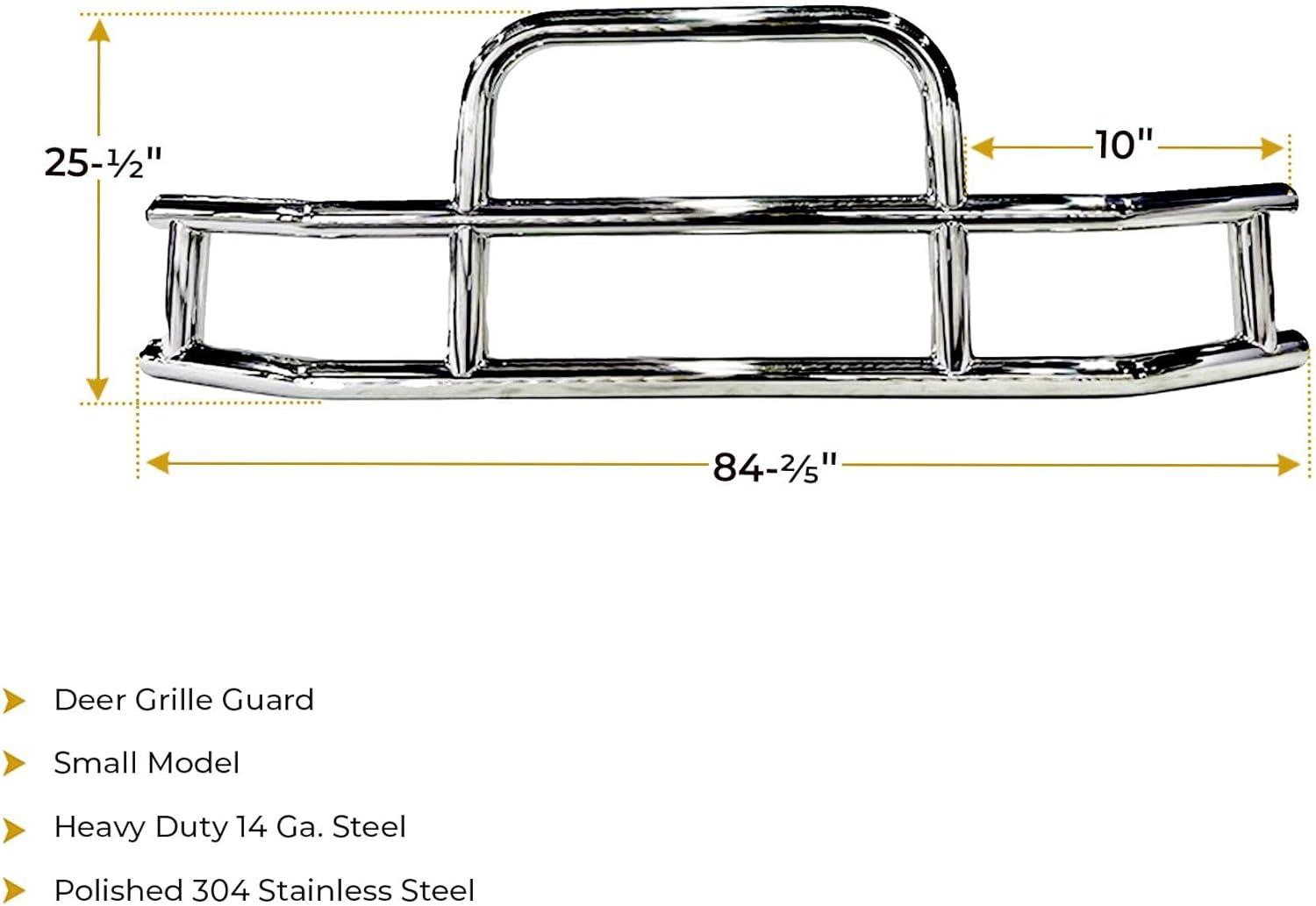 Mytee Products Medium Model Deer Grille Guard Compatible for VOLVO VNL (2004-2017) with Brackets - 84-2/5"x42-3/5" Heavy Duty Polished Stainless Steel Grille Guard for Trucks(Small)