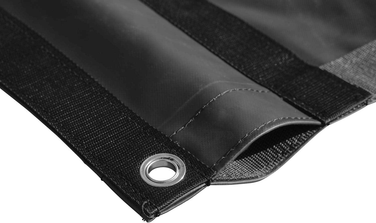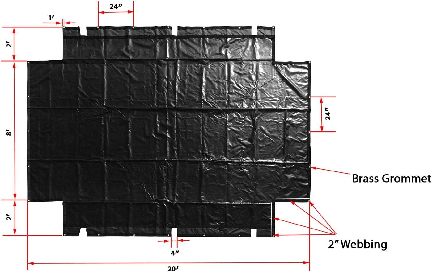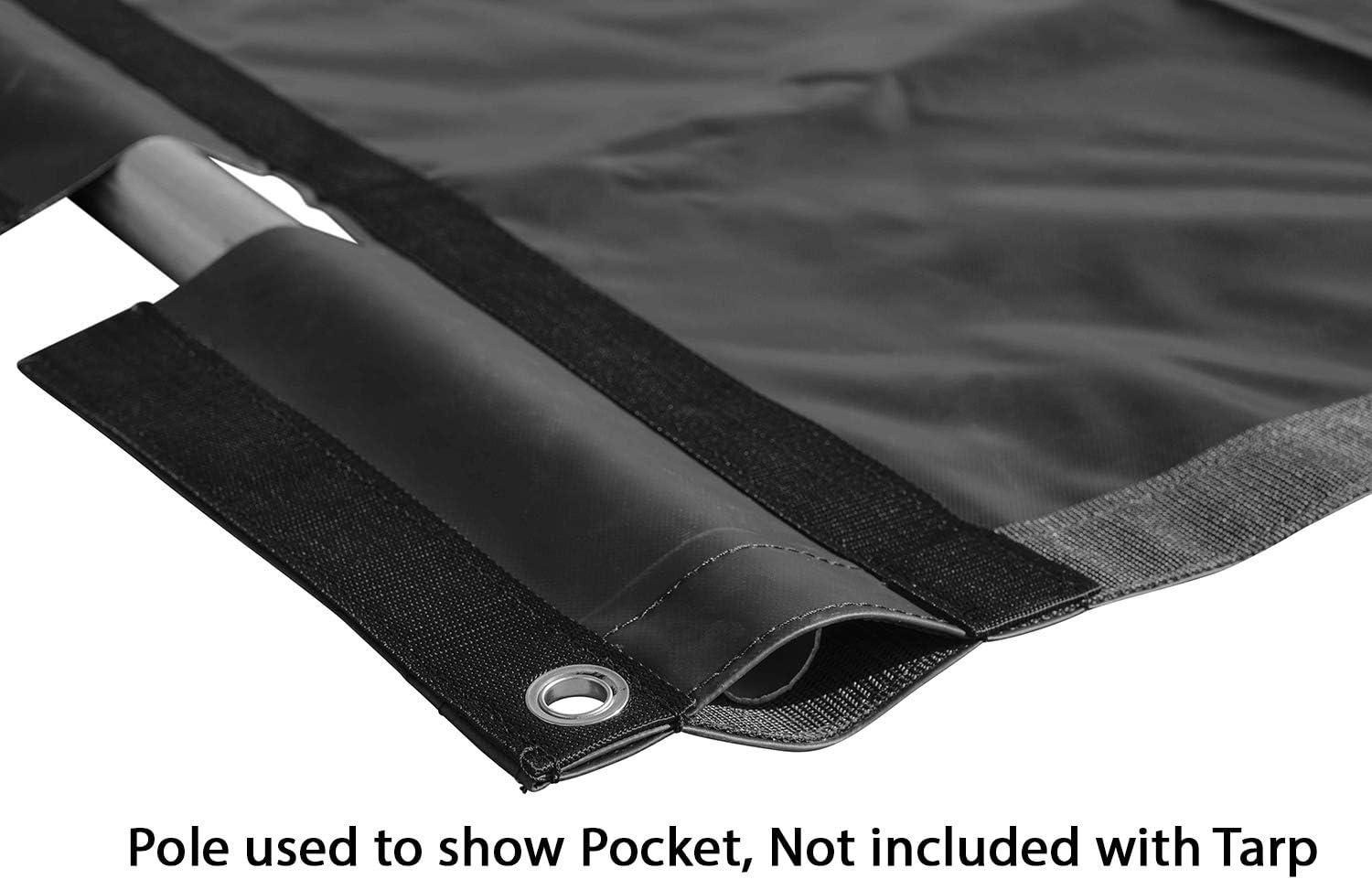 - Our Roll Off Dumpster Tarps are made to have a 1' drop on each side when properly used. All four sides have gromets along the outter edge every 2', giving you ample tie-down points. Heavy duty 18oz vinyl is completely waterproof for complete protection.