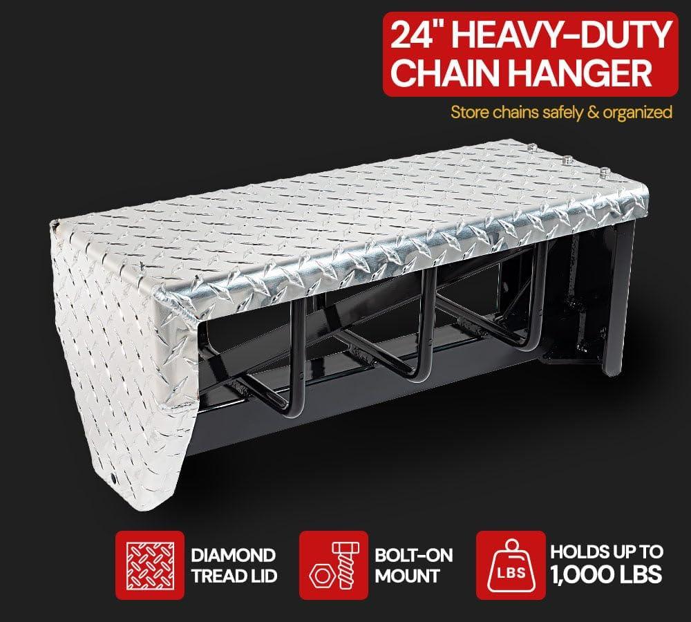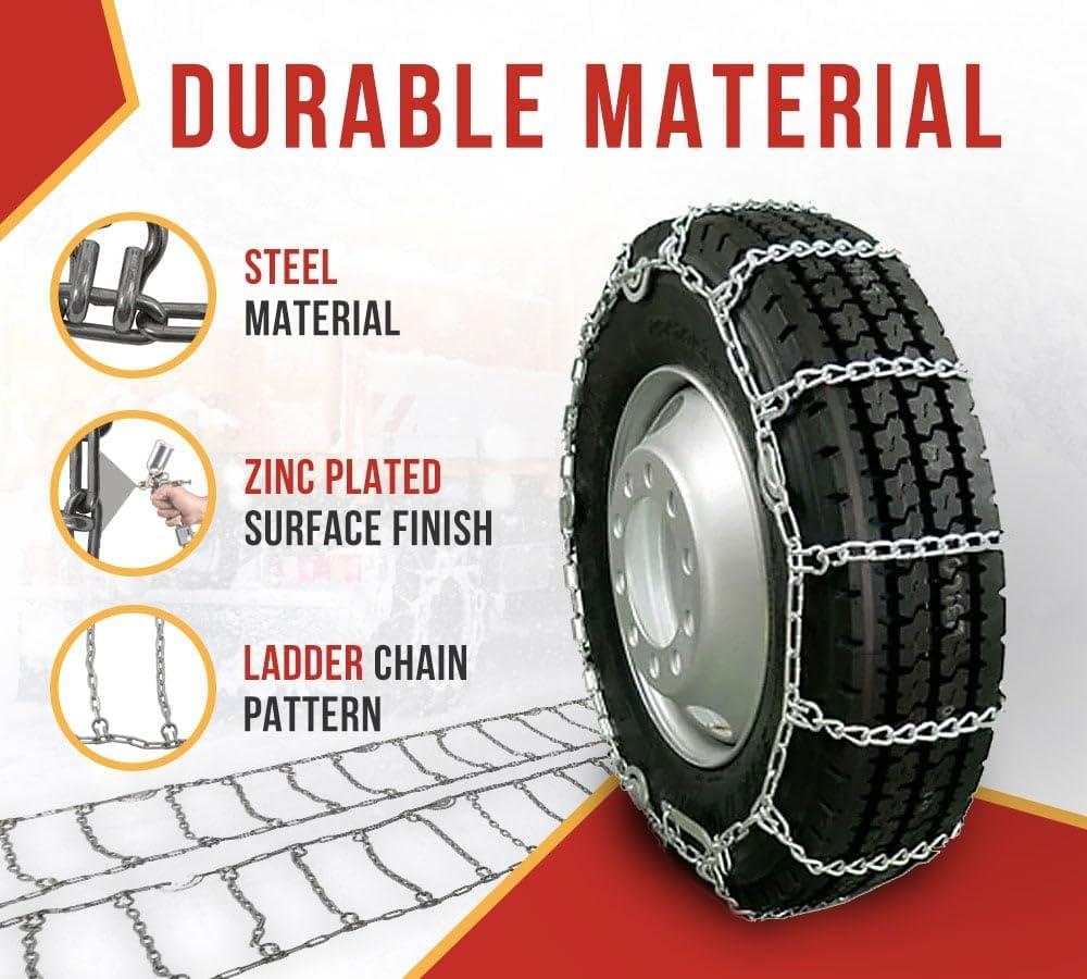 Carbon Steel Construction – These 22.5″ Semi Truck Snow Chains are built with hardened carbon steel, ensuring durability & strength. The cross links & side-wall chains enhances traction & provides reliable performance.