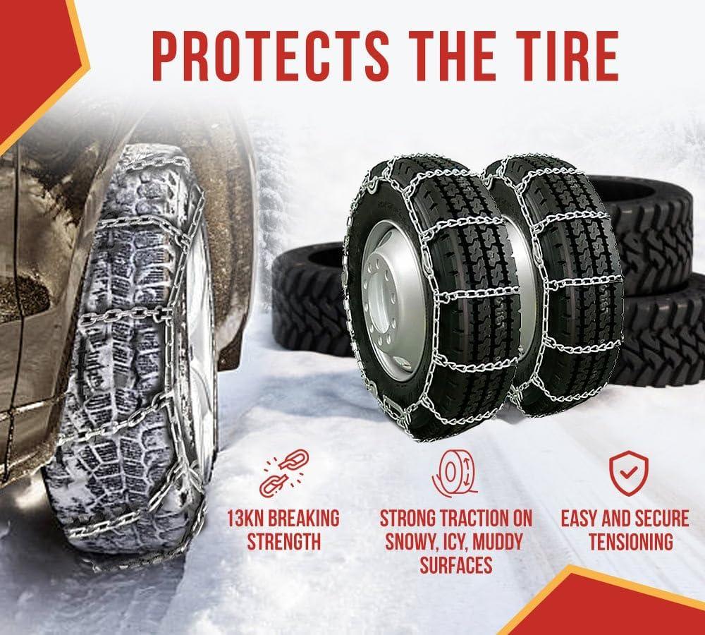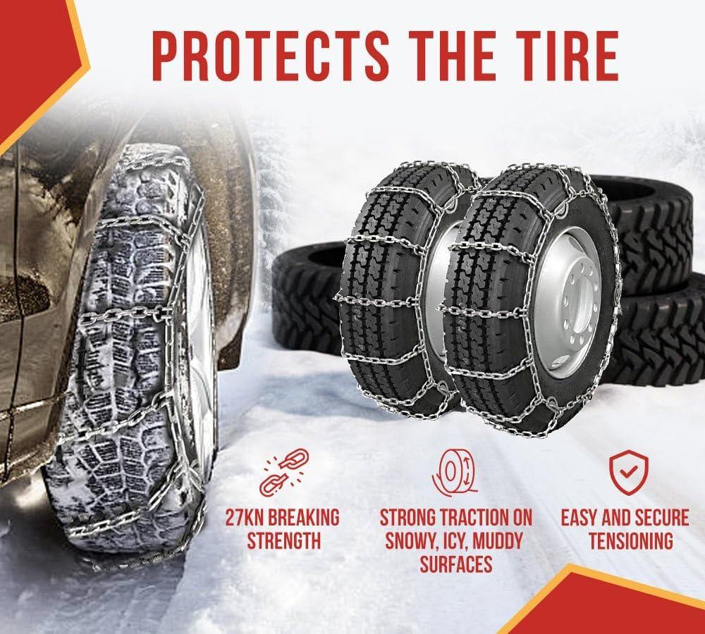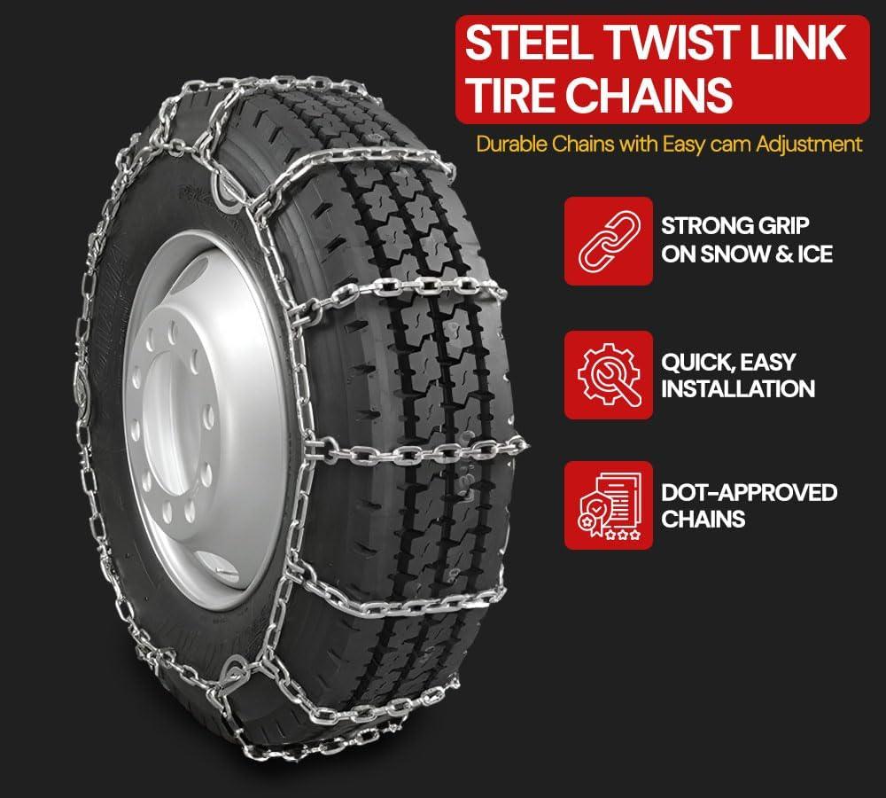 Mytee Products (Set of 2) 22.5″ Twist Link Snow Tire Chain for Semi Trucks – Emergency Tire Traction Grip Chains – Snow Blower Single Wheel Chains for Commercial Trucks, SUVs, Pickups, Auto Trac(Double Tire (24.5 Inch))