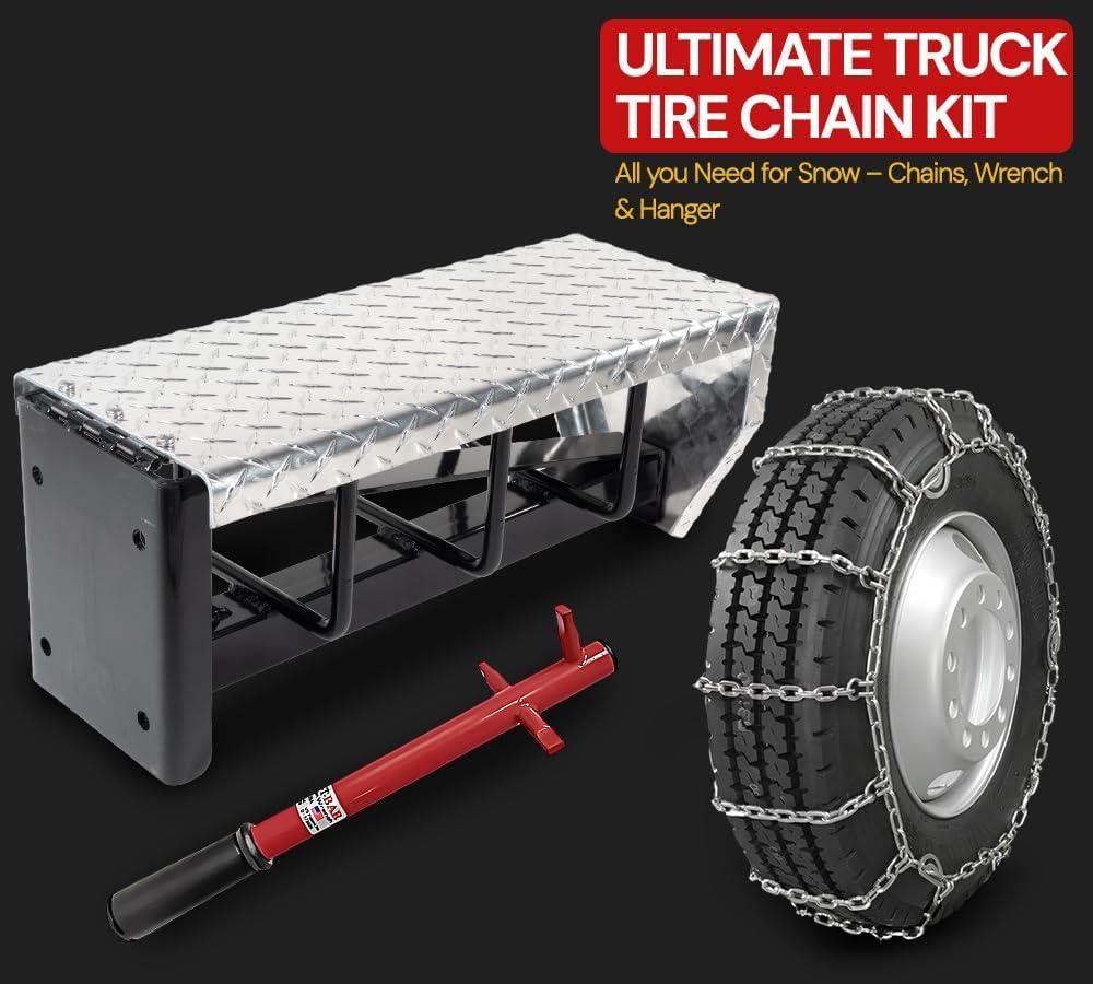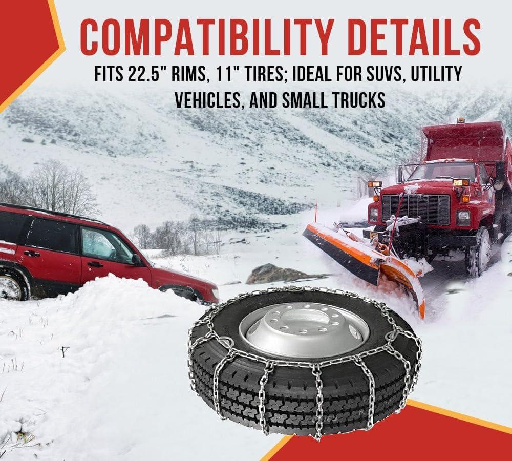 Mytee Products (Set of 2) 22.5" Twist Link Snow Tire Chain for Semi Trucks - Emergency Tire Traction Grip Chains - Snow Blower Single Wheel Chains for Commercial Trucks, SUVs, Pickups, Auto Trac(Single Tire (22.5 Inch))
