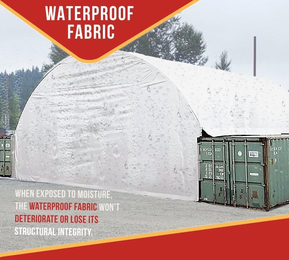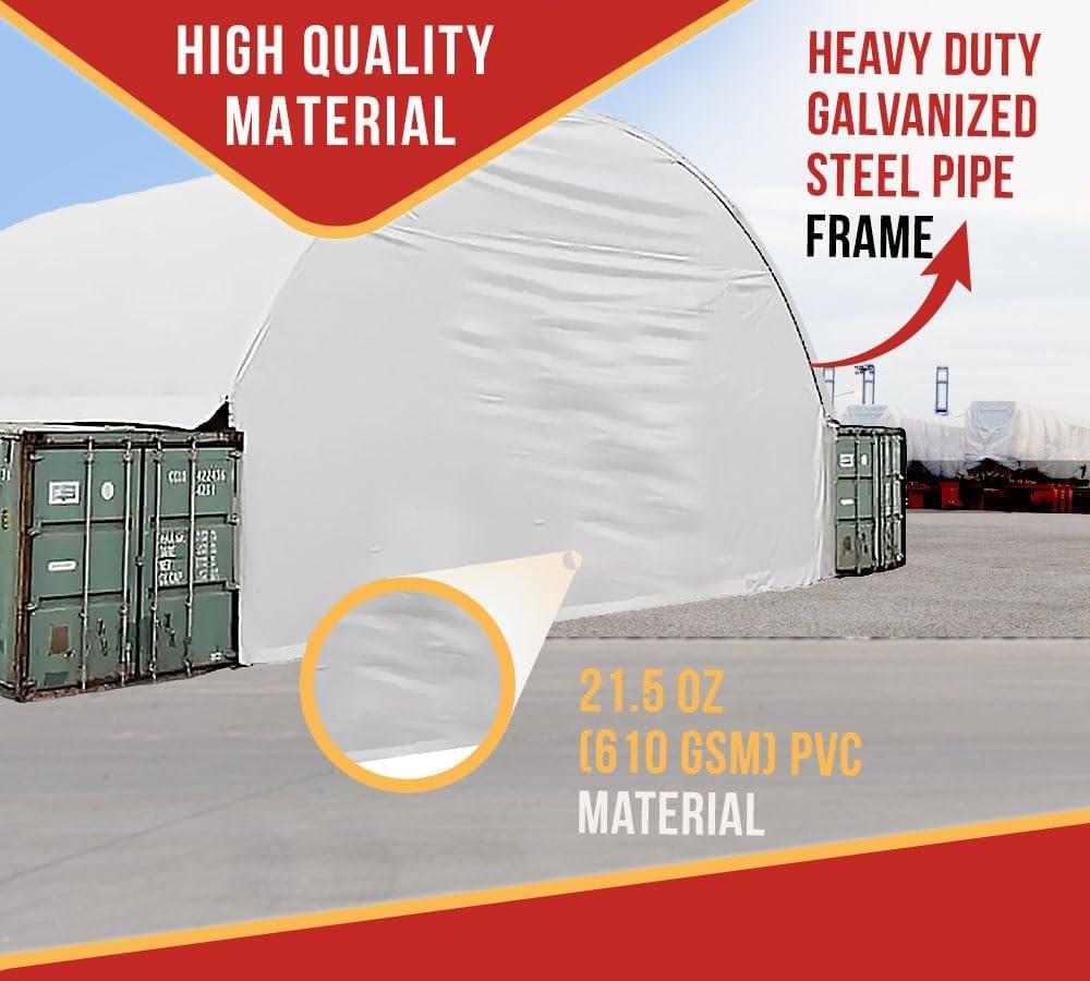 Mytee Products Shipping Container Canopy Shelter Kit – 20′(L) x 20′(W) 21 Oz 610 GSM PVC White Cover Storage Container Roof with Back End Wall – Snow, UV and Weather-Resistant(20’4″ (H) x 33′ (W))