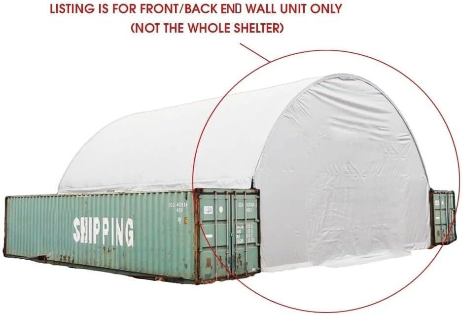 Mytee Products Shipping Container Canopy Shelter Kit - 20'(L) x 20'(W) 21 Oz 610 GSM PVC White Cover Storage Container Roof with Back End Wall - Snow, UV and Weather-Resistant(20-3/8' (H) x 33' (W))