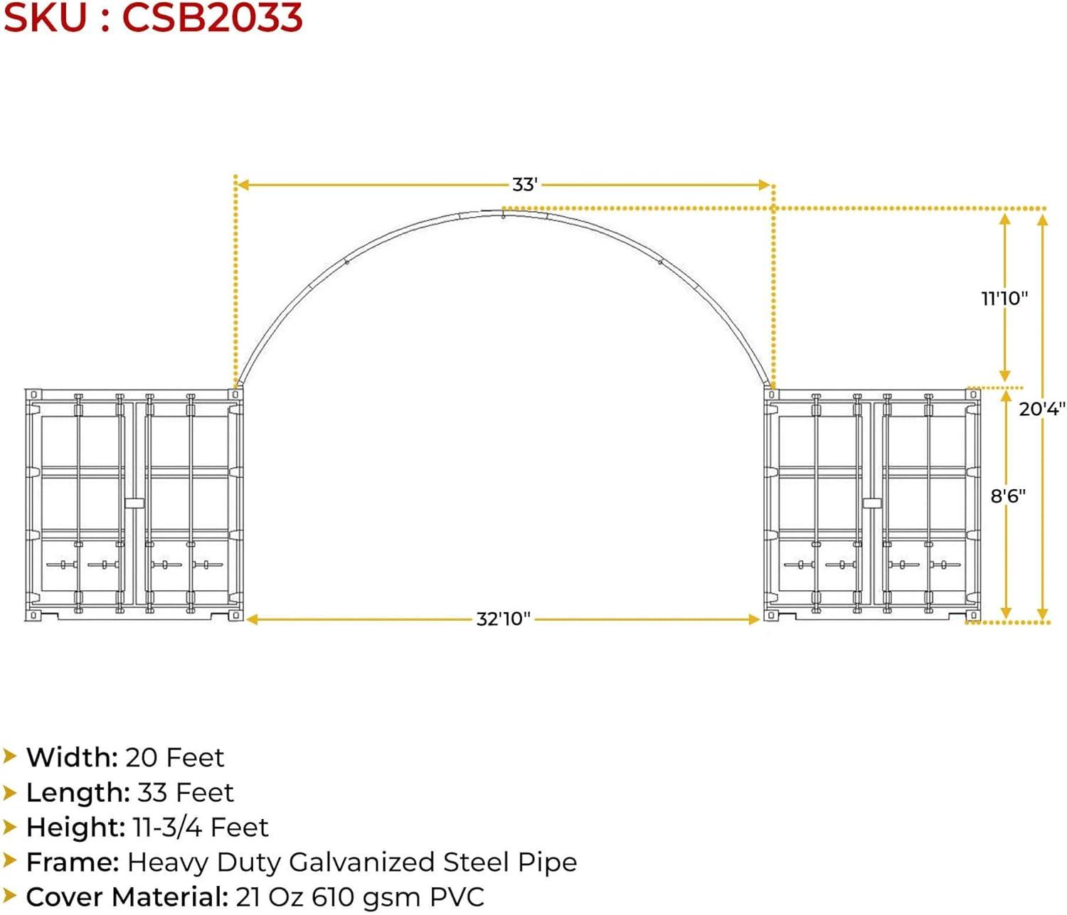 Mytee Products Shipping Container Canopy Shelter Kit - 40'(L) x 40'(W) 21 Oz 610 GSM PVC White Cover Storage Container Roof with Back End Wall - Snow, UV and Weather-Resistant(20 x 33 Feet)