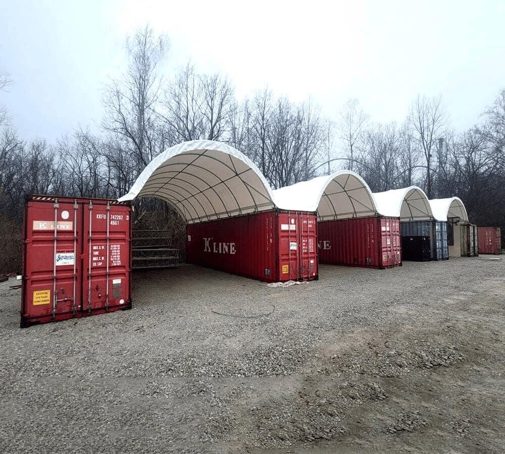 Mytee Products Shipping Container Canopy Shelter Kit – 40′(L) x 40′(W) 21 Oz 610 GSM PVC White Cover Storage Container Roof with Back End Wall – Snow, UV and Weather-Resistant(20 x 40 Feet)
