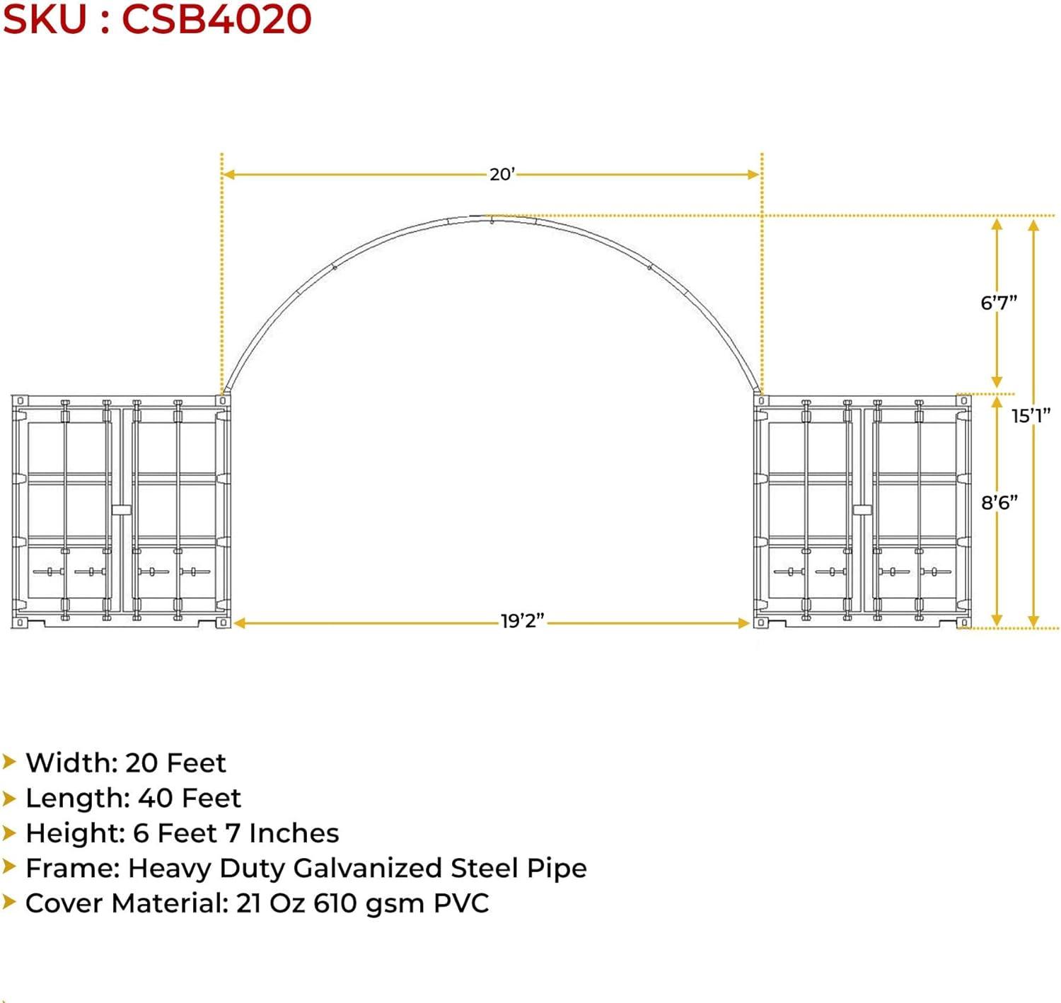 Mytee Products Shipping Container Canopy Shelter Kit – 40′(L) x 40′(W) 21 Oz 610 GSM PVC White Cover Storage Container Roof with Back End Wall – Snow, UV and Weather-Resistant(40 x 20 Feet)