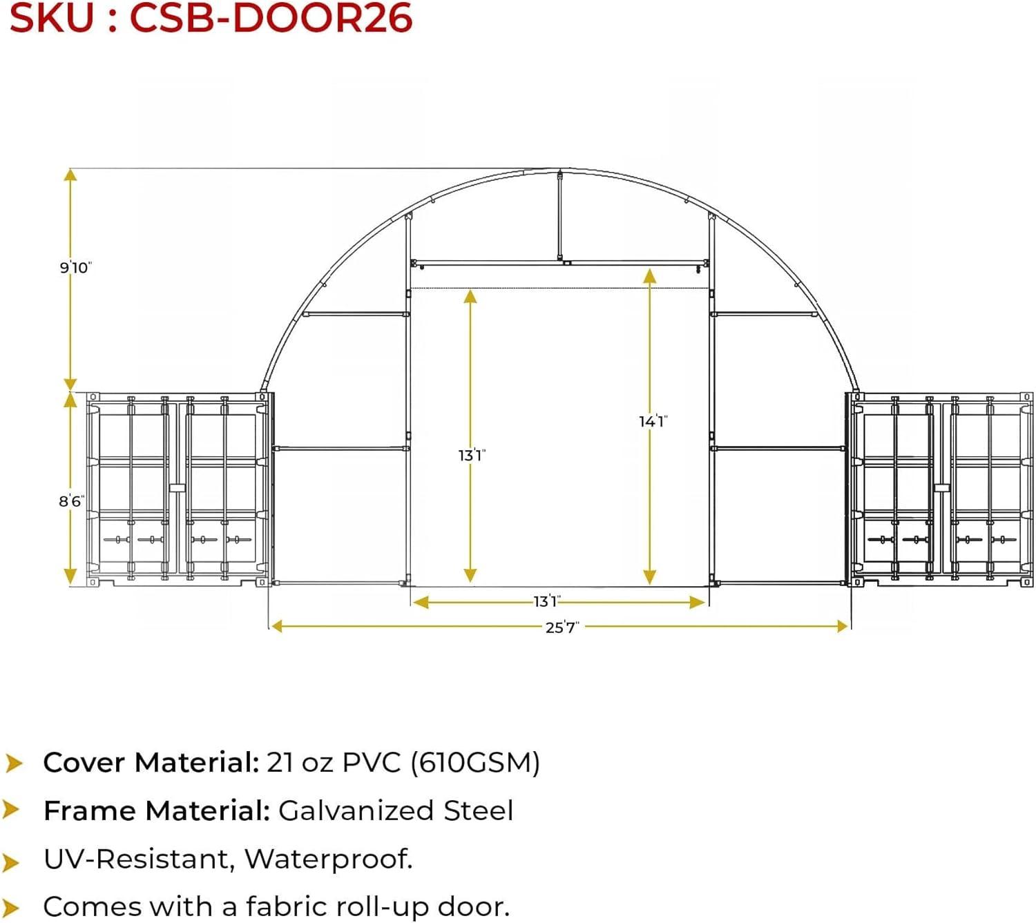 Shelter Size: 40' (L) x 40' (W) x 12'10″ (H) | End Wall Size: 40' (W) x 21-1/4' (H)