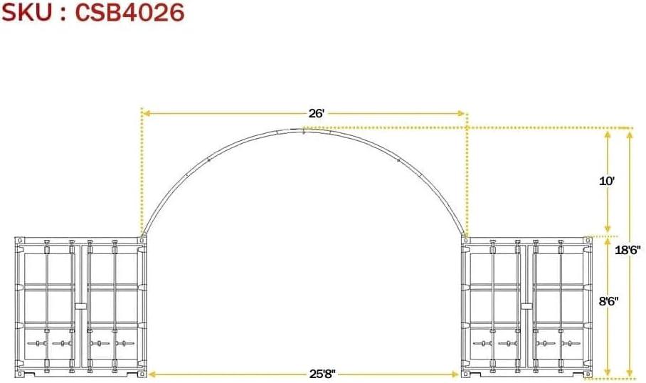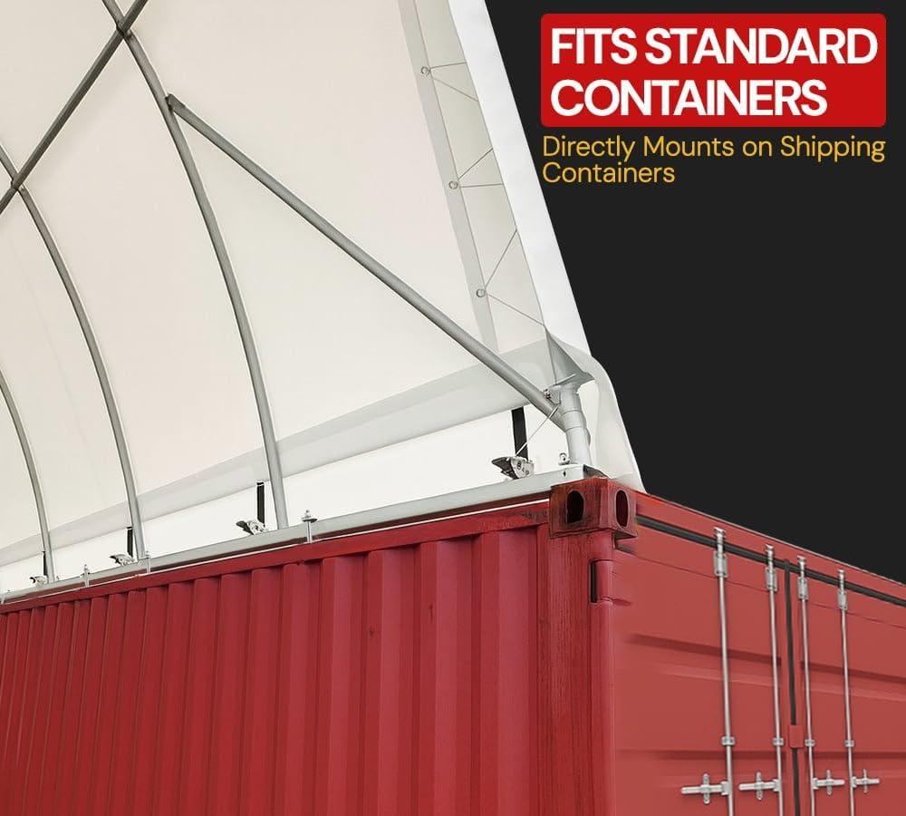 Mytee Products Shipping Container Canopy Shelter Kit - 40'(L) x 40'(W) 21 Oz 610 GSM PVC White Cover Storage Container Roof with Back End Wall - Snow, UV and Weather-Resistant(40 x 26 Feet)