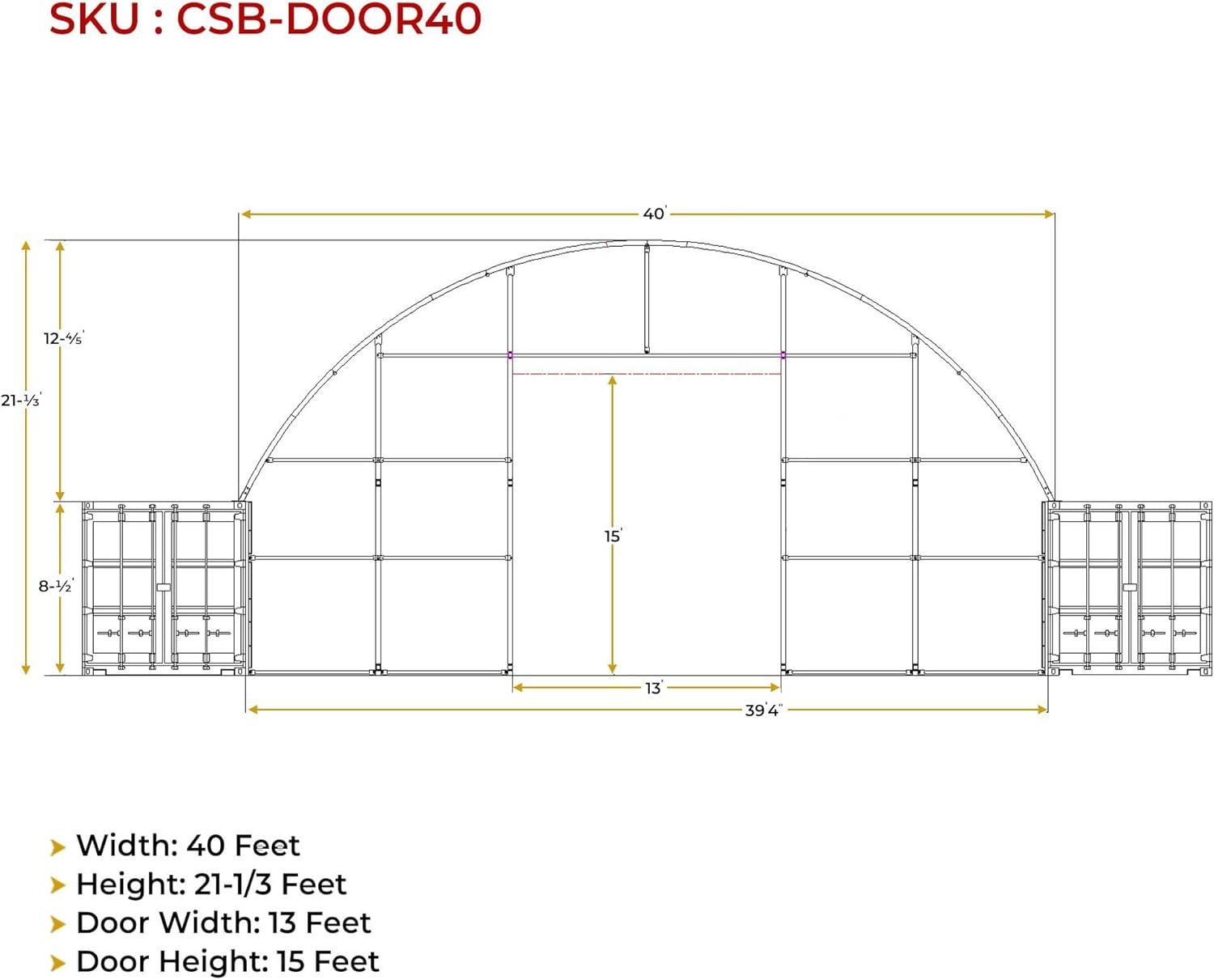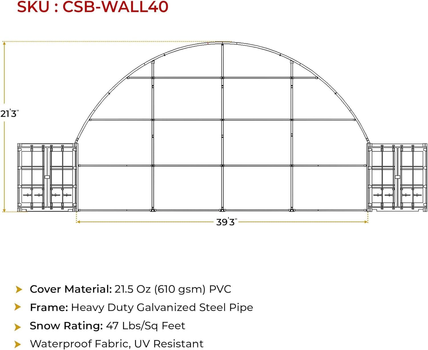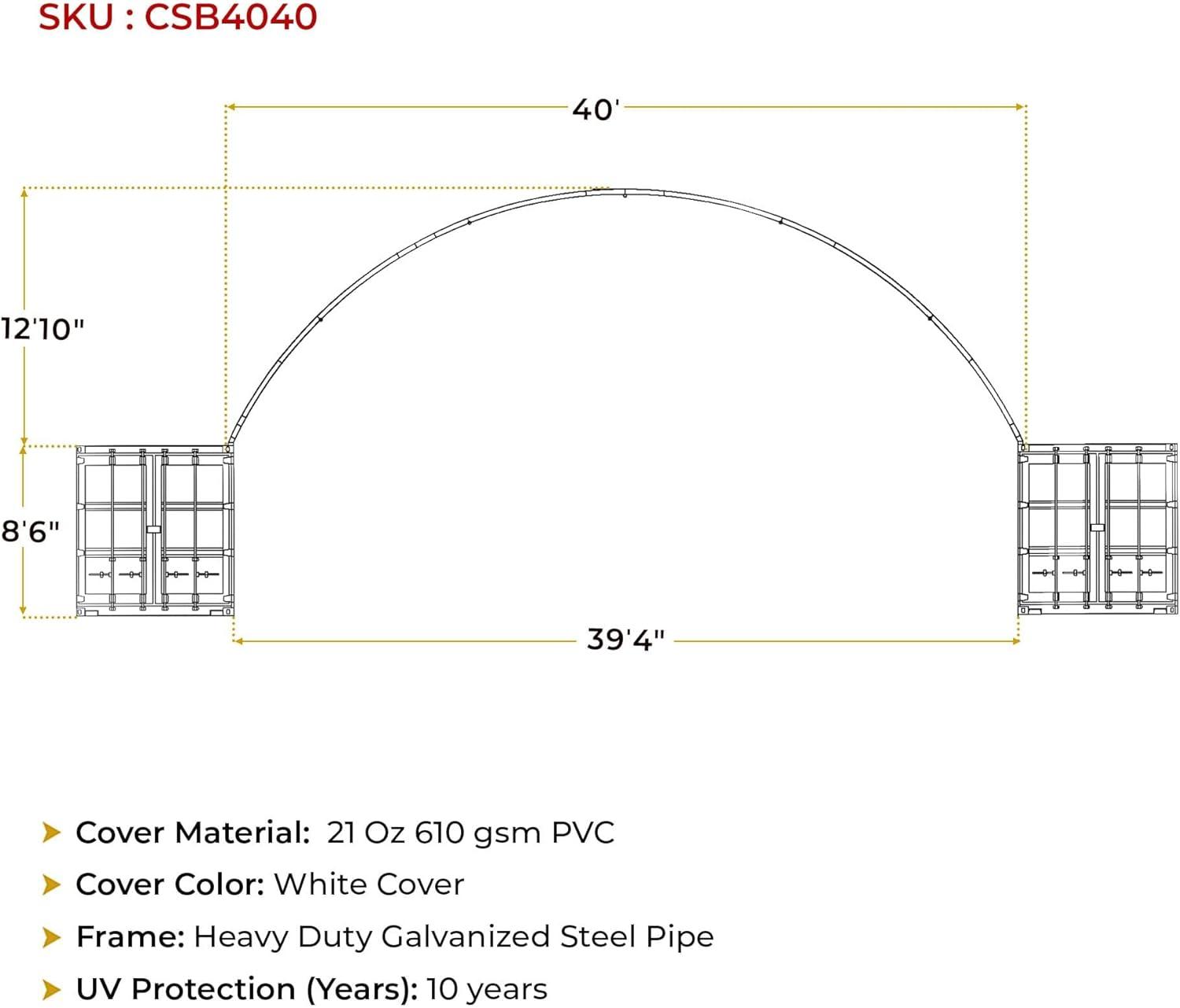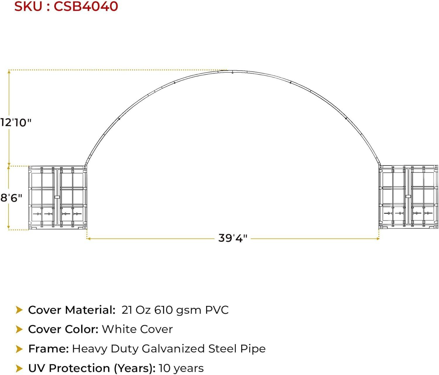 Shelter Size: 40' (L) x 40' (W) x 12'10″ (H) | End Wall Size: 40' (W) x 21-1/4' (H)