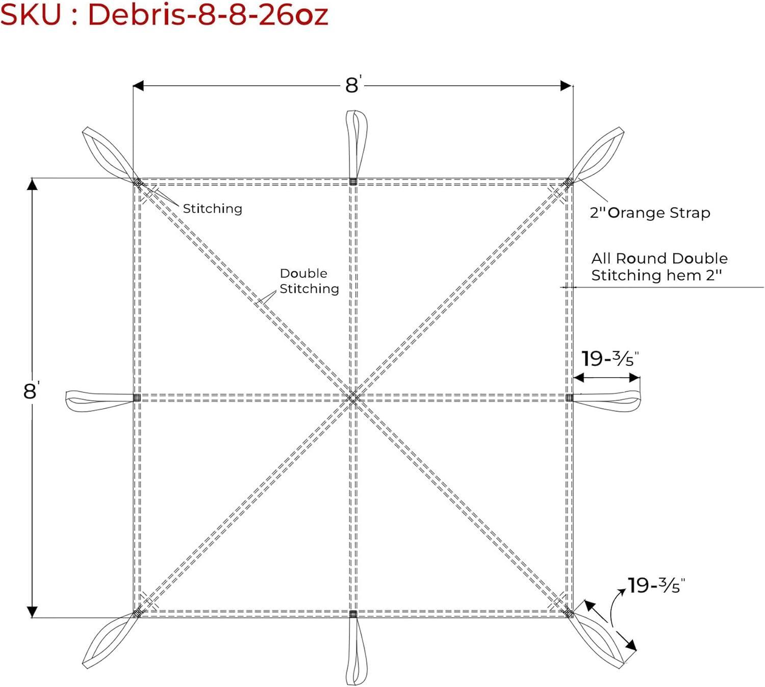 Material: 26 oz Heavy Duty Vinyl | Orange Webbing Loops at 4 Corners