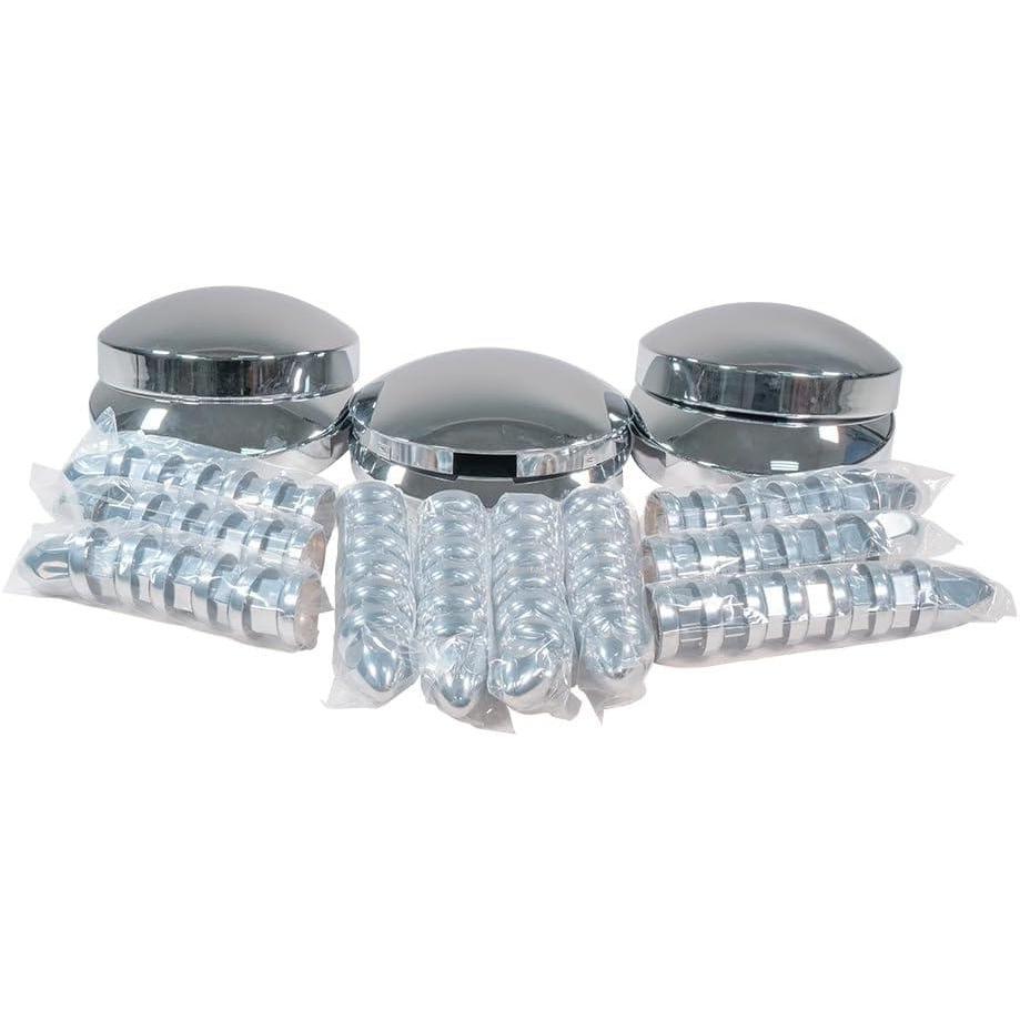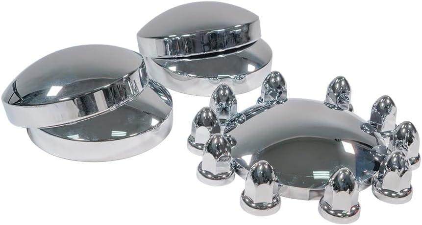 Mytee Products Steel Chrome Axle Wheel Cover Set - Includes (2) Front Hub Caps, (4) Rear Hub Caps, (60) Lug Nut Covers 33mm for Semi Truck | Axle Cover Combo Kit(1 - Pack)