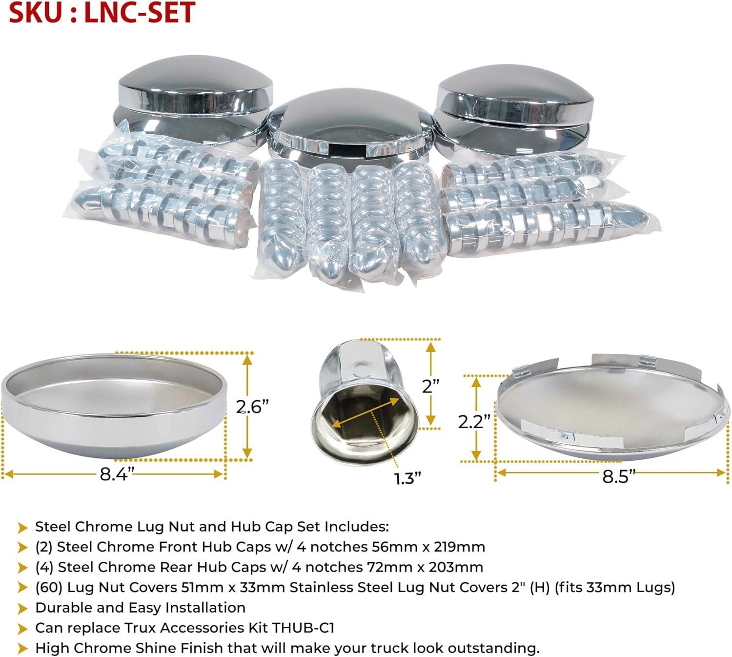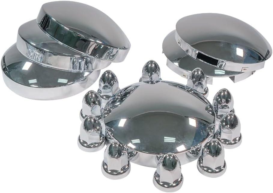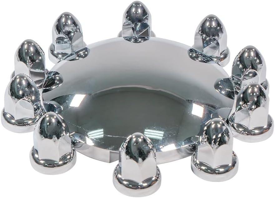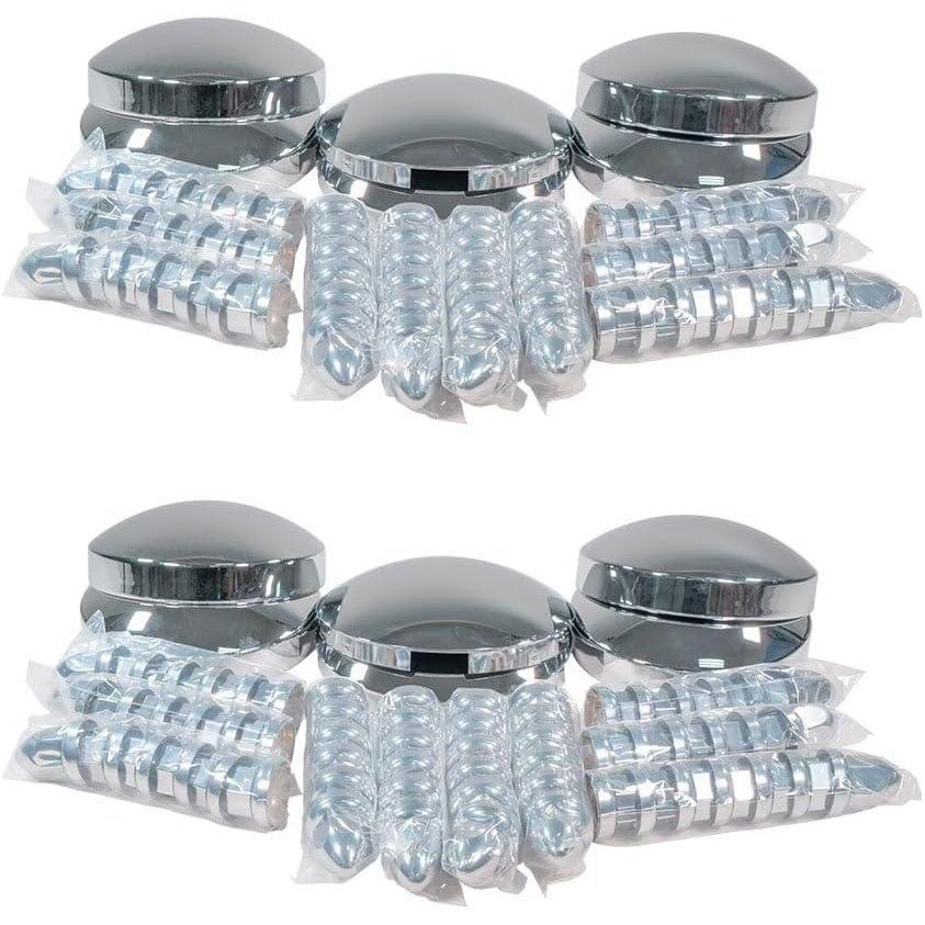 Mytee Products Steel Chrome Axle Wheel Cover Set - Includes (2) Front Hub Caps, (4) Rear Hub Caps, (60) Lug Nut Covers 33mm for Semi Truck | Axle Cover Combo Kit(2 - Pack)