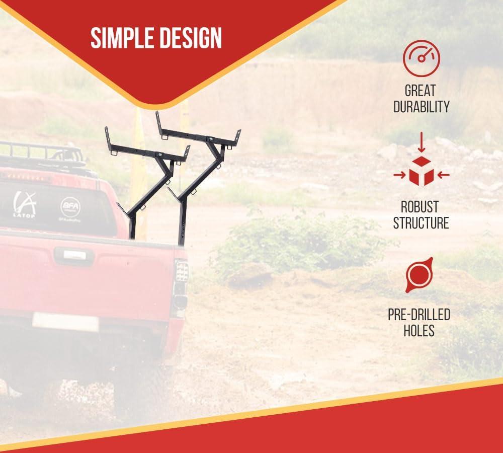 - Uncompromising & Steady Built: We crafted this steel ladder rack to ensure robust structure and sturdiness. It can withstand a substantial load of up to 250 lbs per bracket. These racks will have significant exposure to outdoor settings, so we have coated them with black powder. It will protect it from UV, changing weather, and more.
