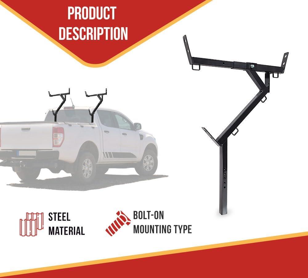 - Measurements: These side-rail ladder racks for trucks are designed to fit most truck beds—universal compatibility. You can keep ladders, pipes, lumber, and other materials for transportation. It includes a removable crossbar that adjusts from 20″ to 28″ wide and can be placed at any interval on the truck. It can hold up to 3 ladders.