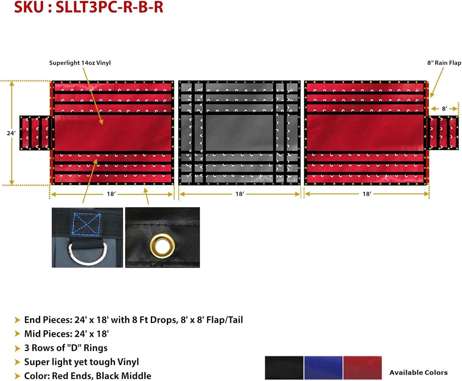 Mytee Products 24′ x 27′ Flatbed Truck 18 Oz/14 Oz Combination Lumber Tarp with 8 FT Drop – Red Heavy Duty Vinyl Waterproof Tarp for Trailers to Protect Cargo from Wind, Rain, Snow and Sun