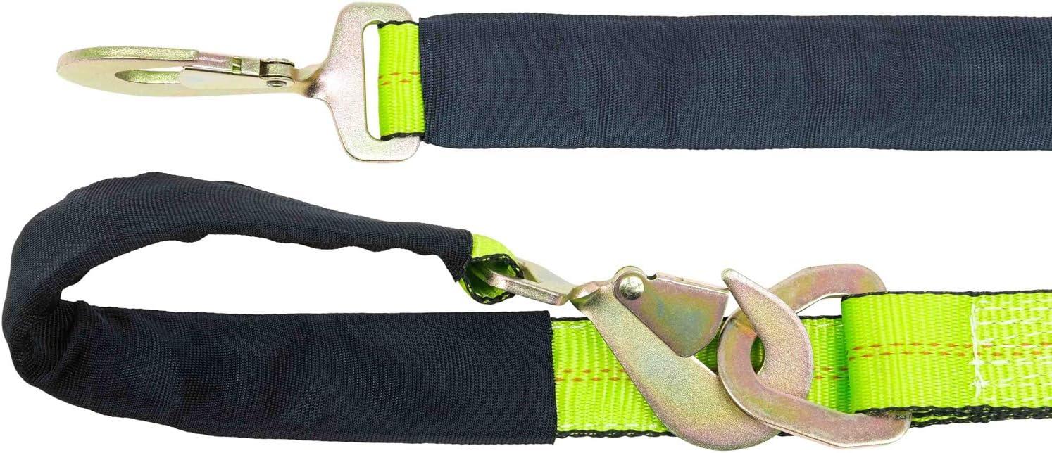 Mytee Products V-Bridle Strap 2″ x 6′ w/Snap Hooks w/Cordura Sleeve and Axle Straps, D Ring Middle, for Car Hauler, Rollback, Flat Bed, Tow Truck, Wreck & Recovery(2″ x 4′)