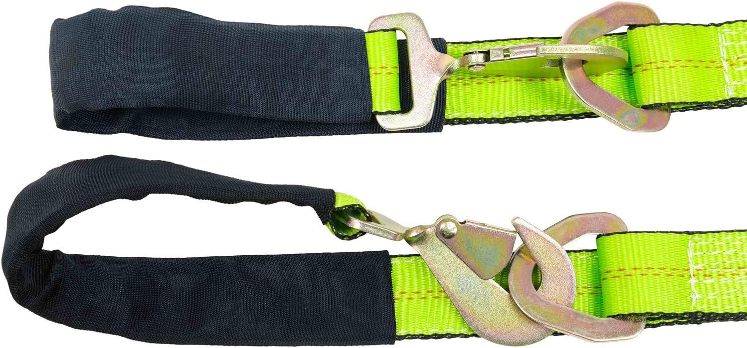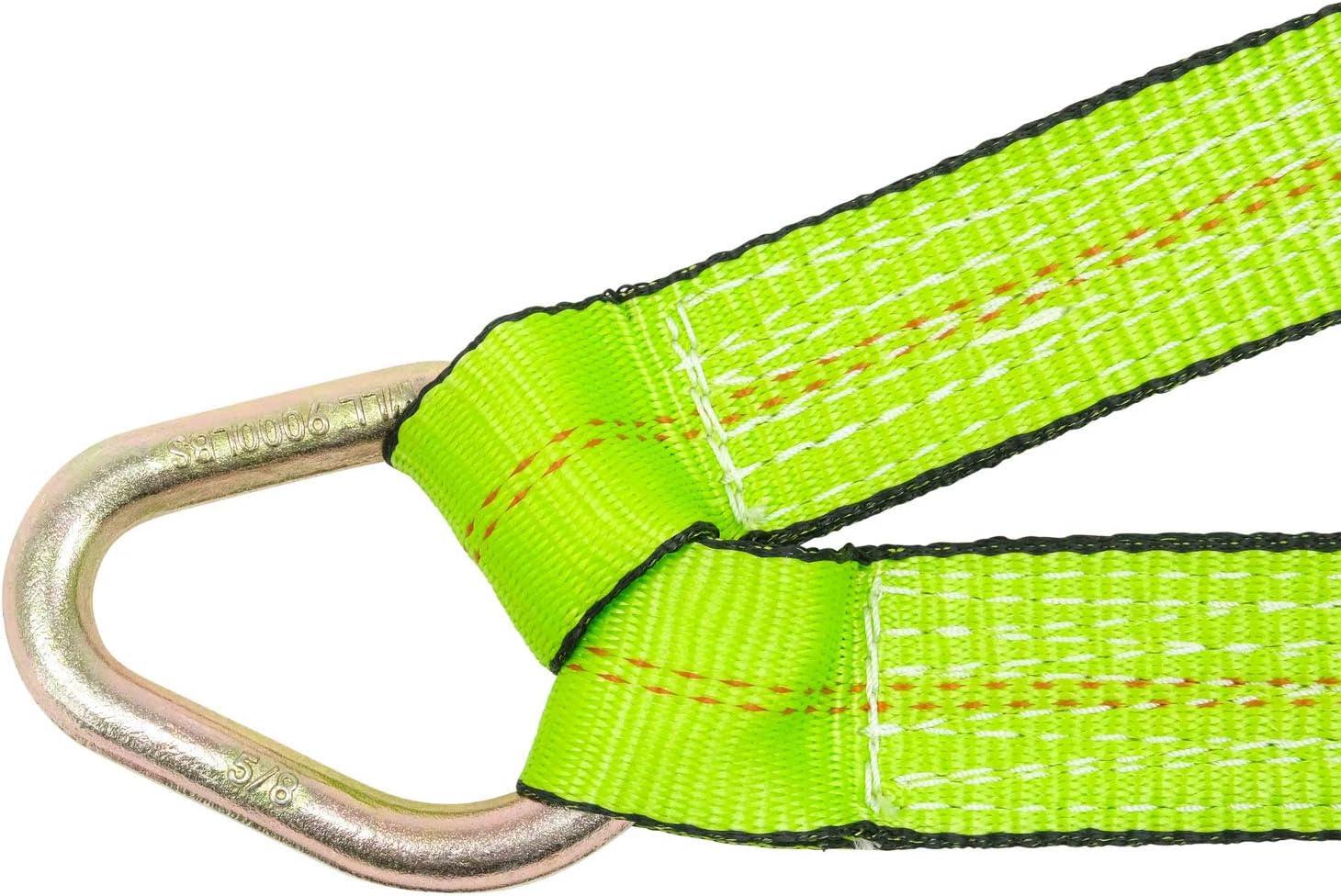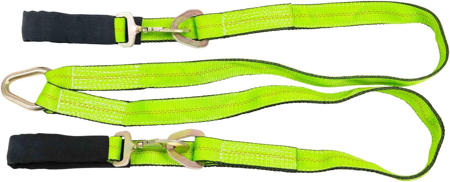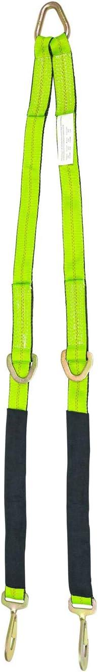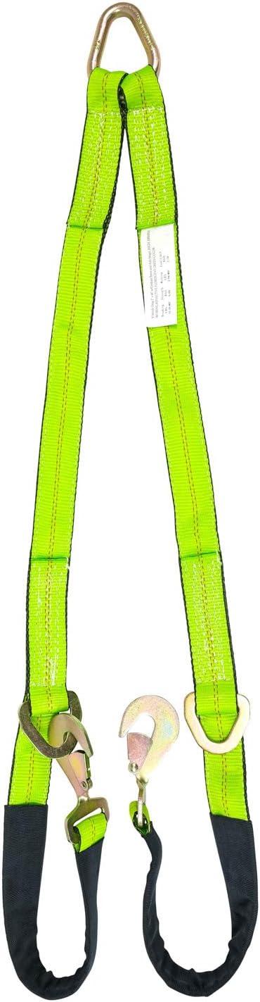 Mytee Products Tow Straps V Bridle 3″ x 48″ w/RTJ Clusters, Hi VIZ/HI Abrasion Green Webbing, 5400 lbs WLL | Recovery V Strap w/Reinforced Webbing for Towing, Wrecker, Rollback, Car Hauler(1 – Pack)