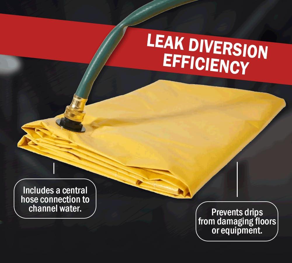 - Our Drip Diverter Tarps are light weight vinyl coated material that catch roof leaks and divert thm away from anything that should not be wet or moist.