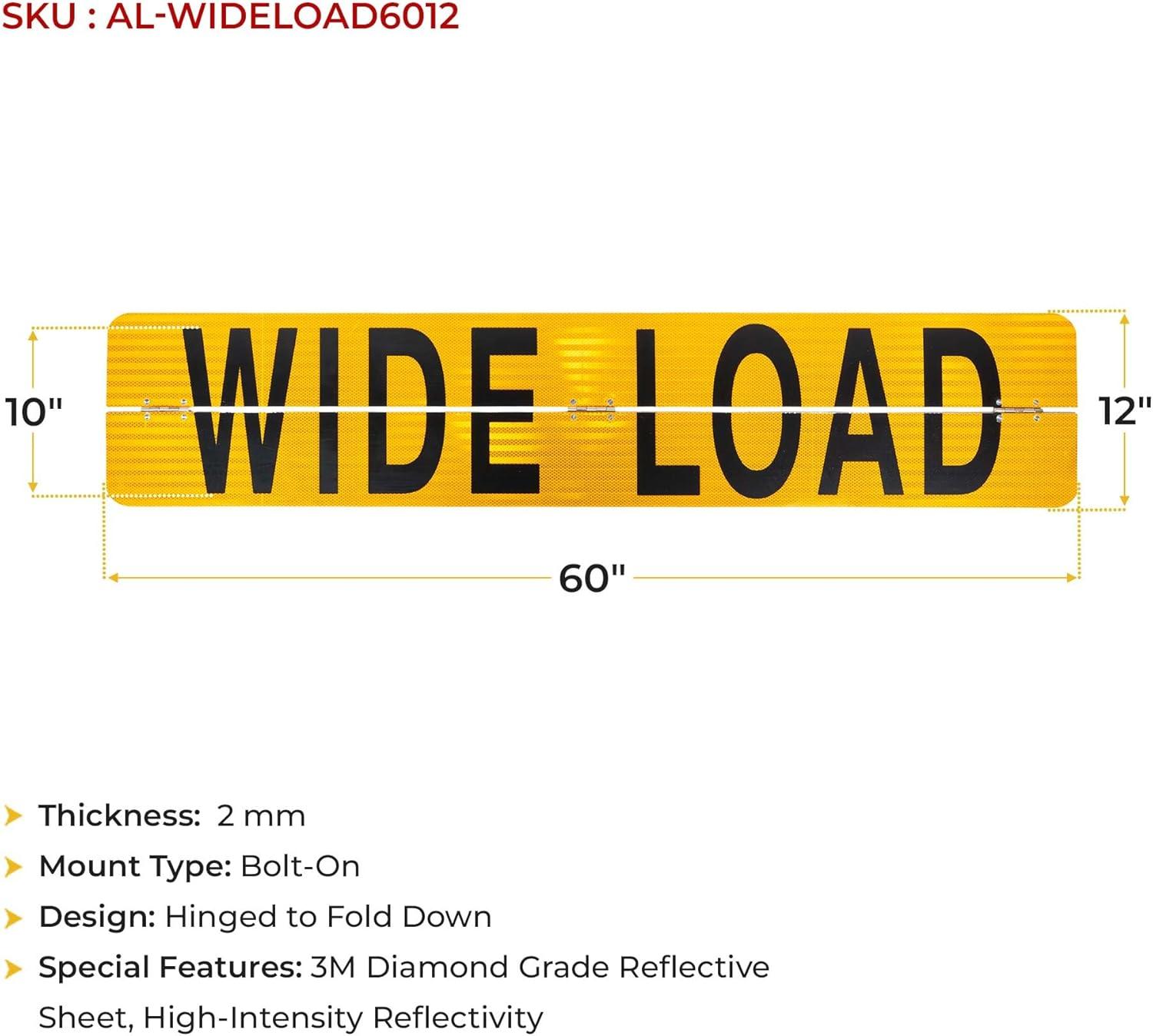 Mytee Products WIDE LOAD Aluminum Center Hinged Sign 72" (L) x 12" (H) x 0.08 (w) for Trucks and Trailers Made in USA(12" x 60" (2 Pack))