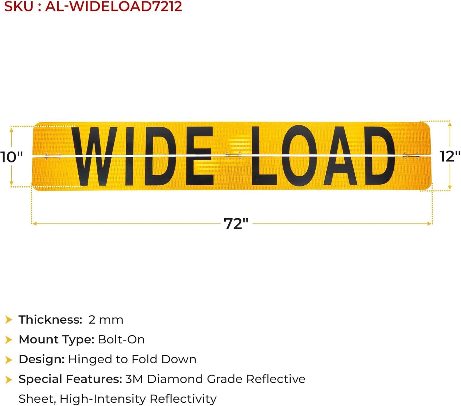 Mytee Products WIDE LOAD Aluminum Center Hinged Sign 72" (L) x 12" (H) x 0.08 (w) for Trucks and Trailers Made in USA(12" x 72")