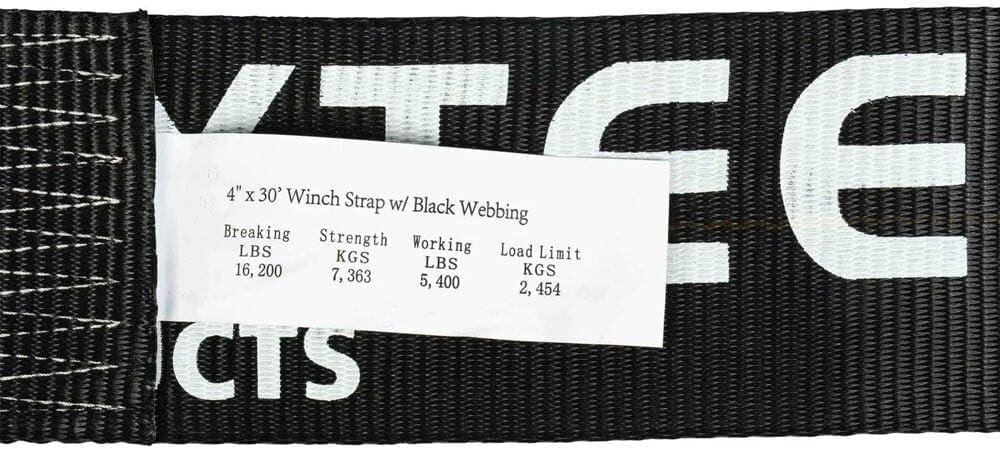 Winch Strap – 4″ Webbing with Flat Hook – 30 ft. – Yellow