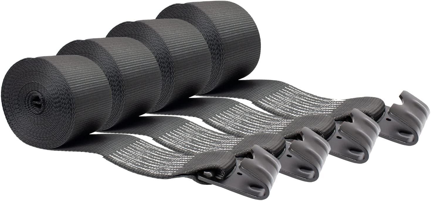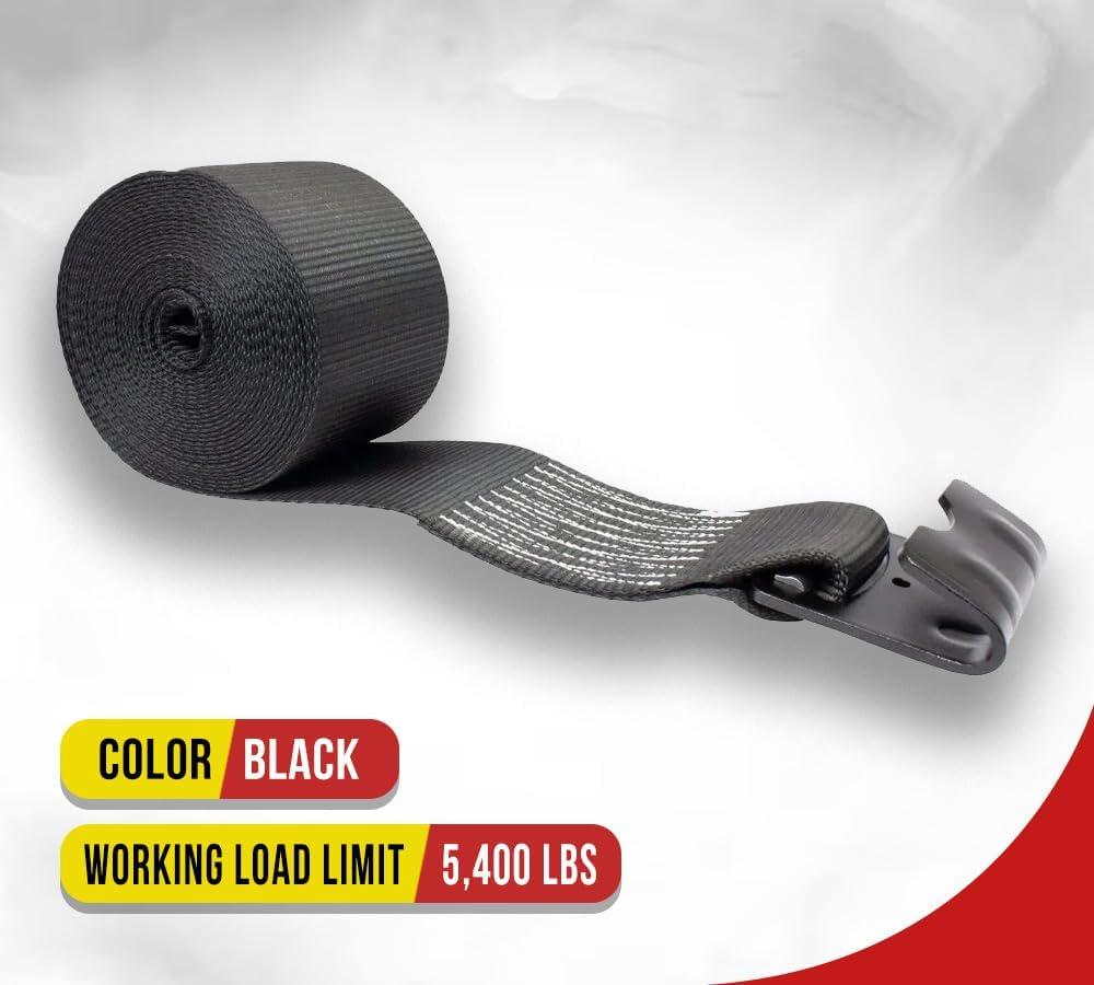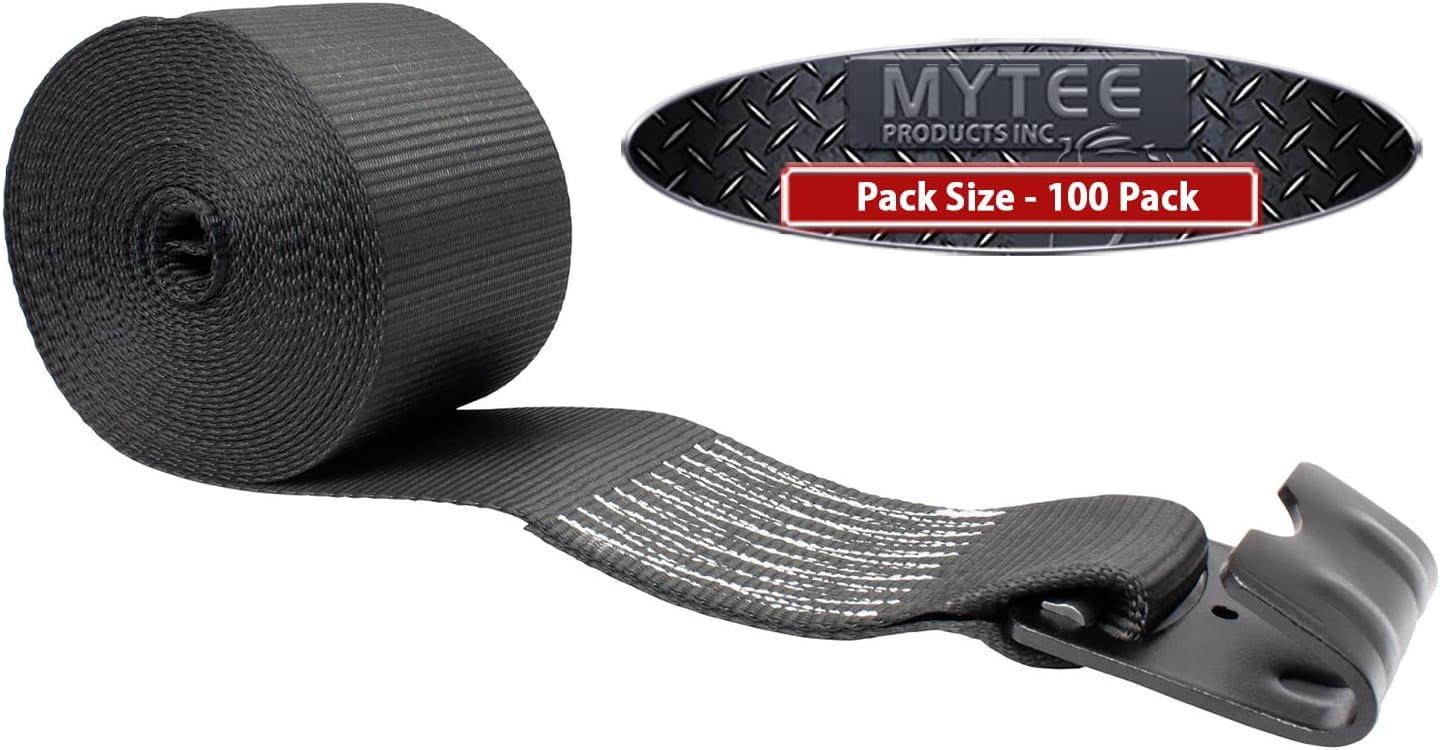 Mytee Products Winch Straps 4″ x 30′ Yellow Heavy Duty Tie Down w/Flat Hooks WLL# 5400 lbs | 4 Inch Cargo Control for Flatbed Truck Utility Trailer (10 Pack)(Black)